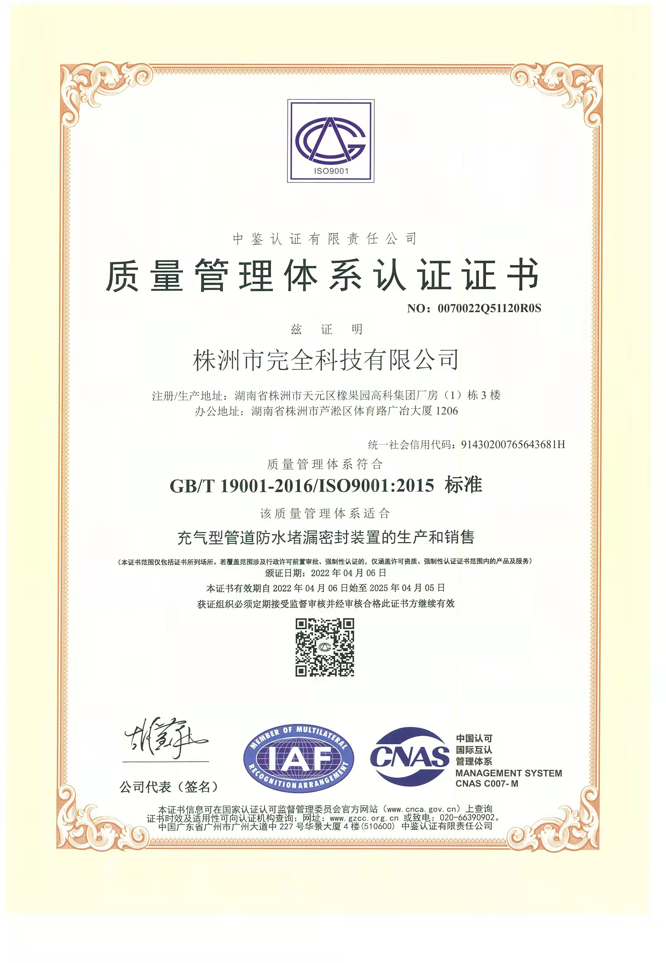 研发与技术认证:作为《充气型管道防水堵漏密封装置》DB43/T 1396-2018的参编单位,完全科技投入大量资源于技术创新,例如与湖南工业大学联合实验室的合作,确保了产品符合严格行业标准。这部分研发成本分摊到产品中,但带来了更高的可靠性和安全性,避免了因密封失效导致的桥梁维护费用。